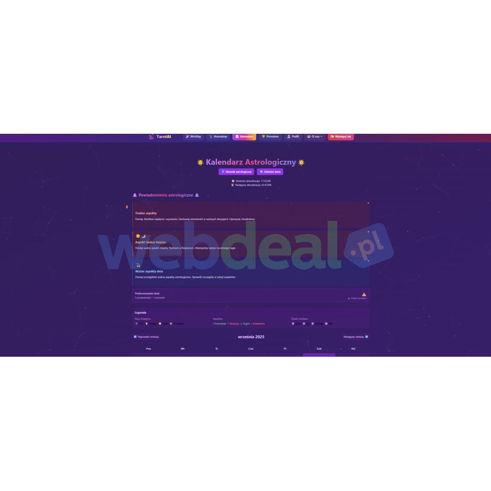 Projekt został stworzony jako demo/startup w niszy lifestyle i duchowości. Z powodu zaangażowania w inne przedsięwzięcia nie mogę poświęcić mu czasu na rozwój i promocję, co czyni go świetną okazją dla osoby lub firmy, która chce szybko wejść w rynek SaaS z gotowym produktem.